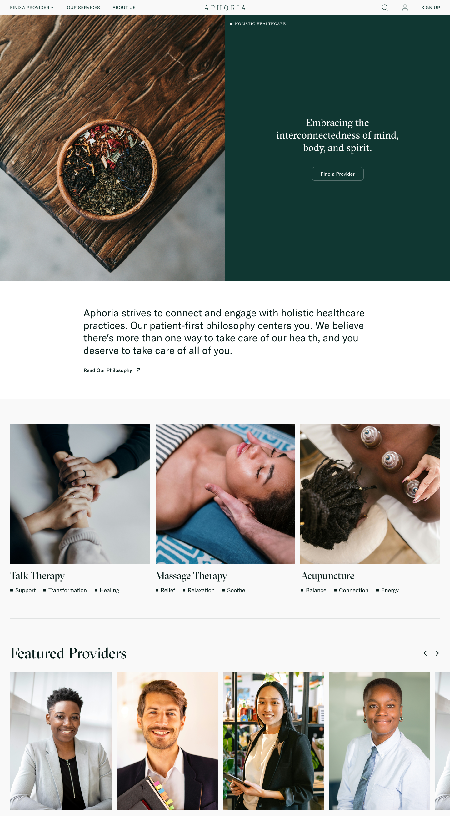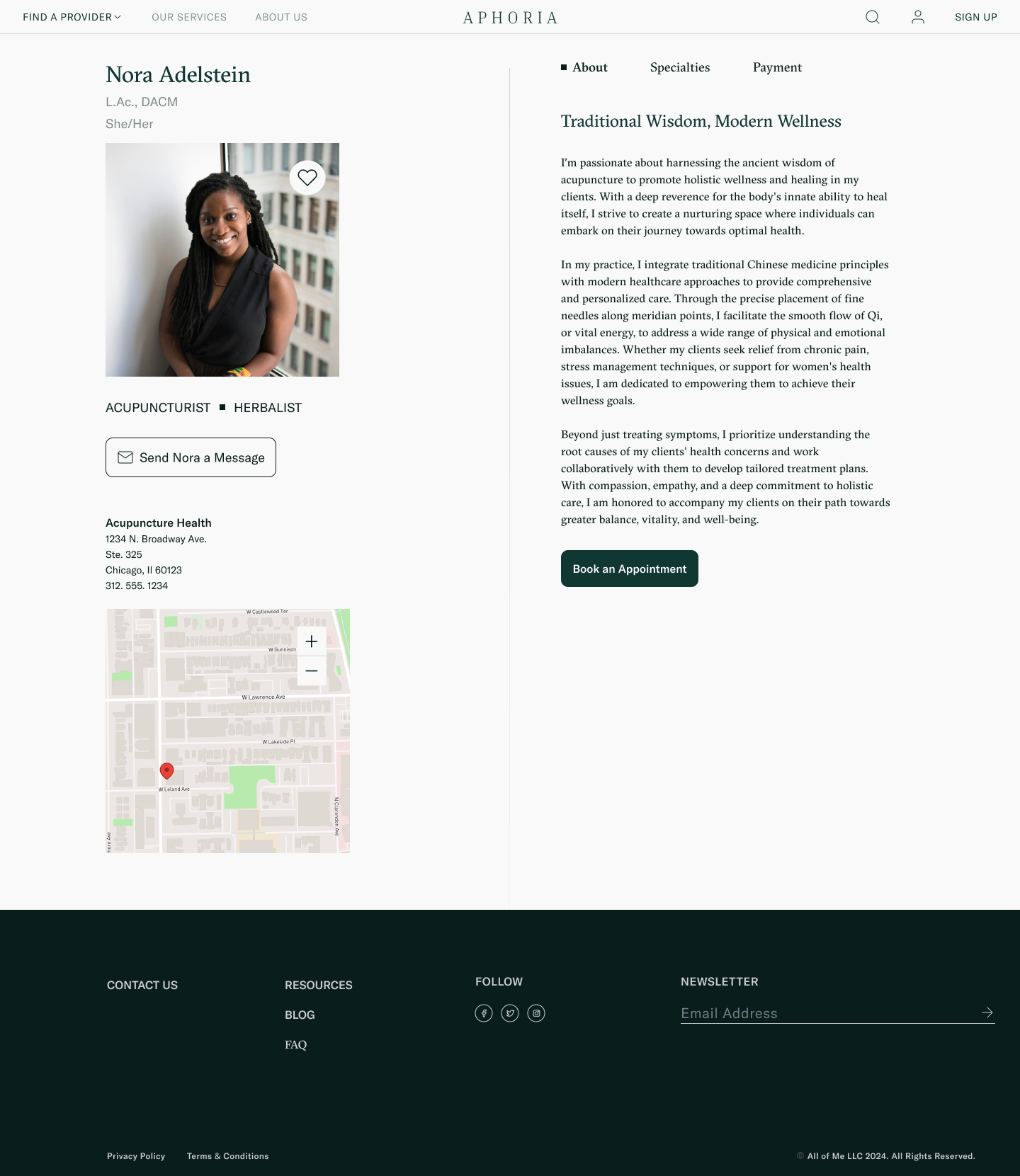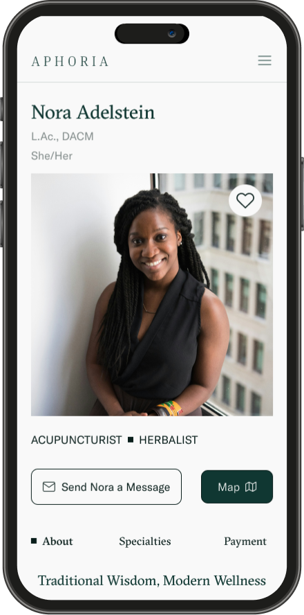 Aphoria was designed to simplify and personalize the search and scheduling between patients and holistic healthcare providers. It focuses on science-backed education, customized search criteria including location, insurance, treatment specialties, condition specialties, and simple, customizable scheduling.