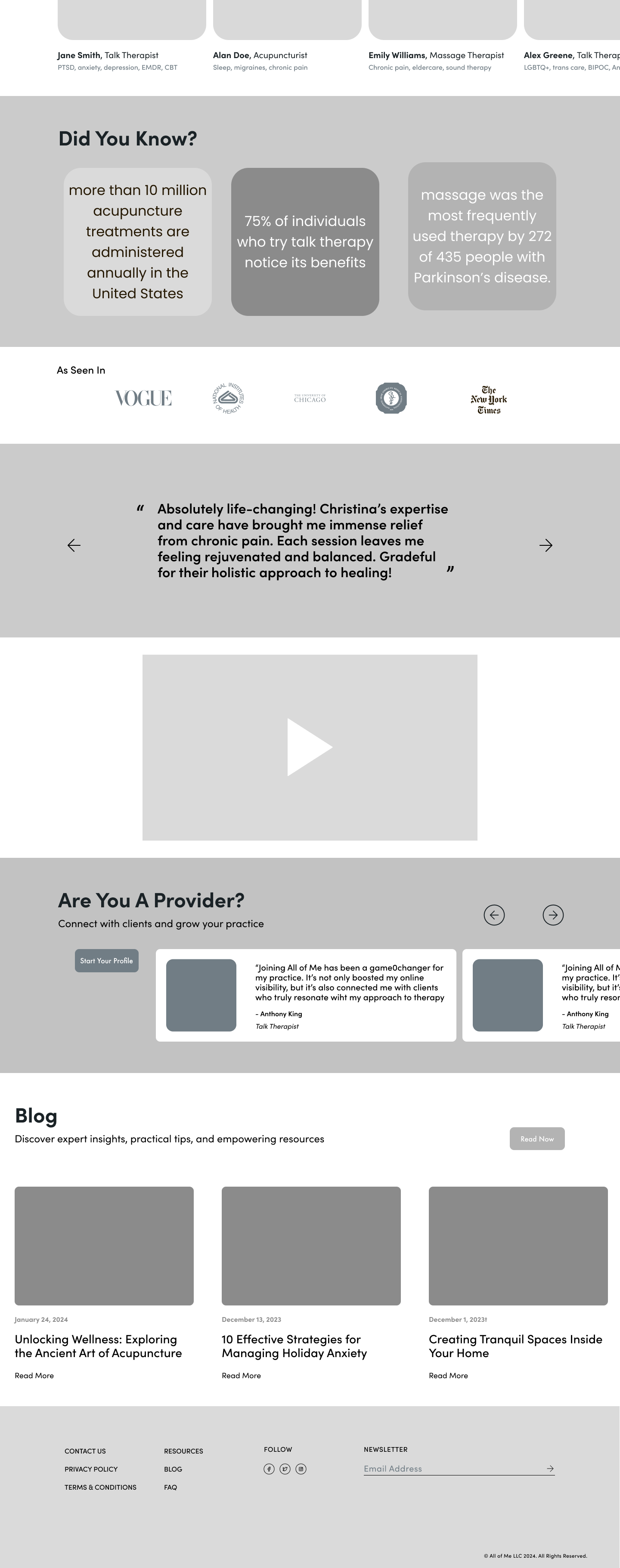 Finding healthcare providers in the U.S. is an arduous, time consuming process, particularly for those who want to try holistic approaches, specifically talk therapy, massage therapy, or acupuncture, before common Western methodologies and treatments.