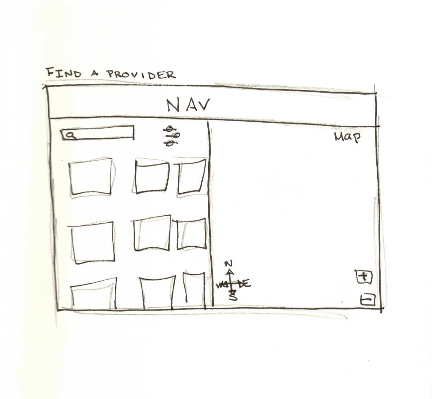 In figuring out the basic layout, it was extremely important to prioritize the variety and personalization of users’ healthcare journeys. This necessity required wireframes that focused on simple navigation and robust filtering, while maintaining easy and intuitive flows.