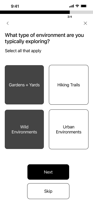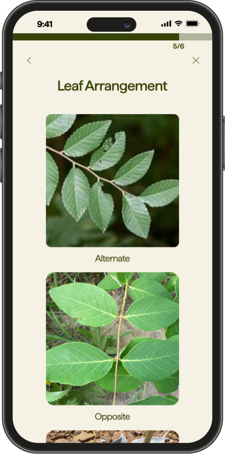 I conducted and moderated six one-on-one ~hour long interviews to ascertain users’ plant identification habits and needs. The biggest problem identified was incorrect and/or inaccurate results from automated photo upload apps. Not only would manual identification eliminate most of the inaccuracy, putting knowledge and power back into the users’ hands, it can also make identification fun and game-like, similar to a nature scavenger hunt.