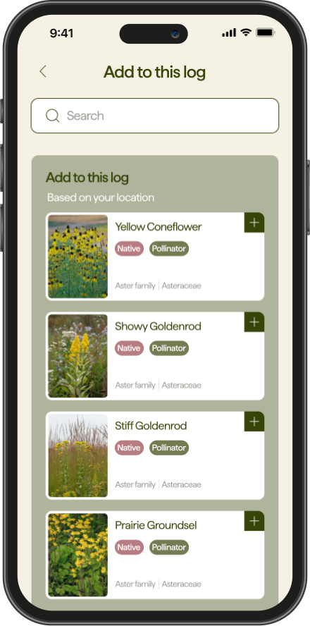 Learning scientific methods and language as a layperson can be overwhelming and difficult to the average user. By simplifying the identification process, users can easily tackle the unique combinations of features of all plants to narrow down and select the correct option. By incorporating tags, users can learn easily digestible data about the world around them such as whether the plant is a pollinator and/or native to their region.