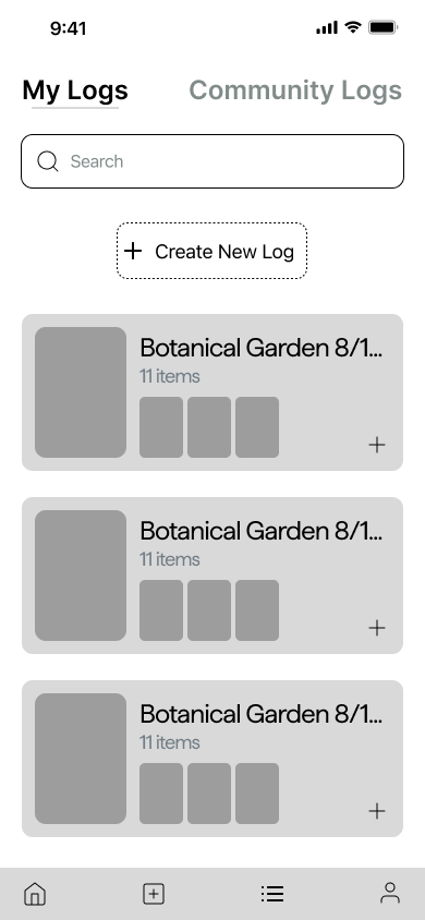 In figuring out the basic layout, it was extremely important to prioritize the variety and personalization of users’ plant identification journeys. This necessity required wireframes that focused on simple navigation and robust filtering, while maintaining easy and intuitive flows.