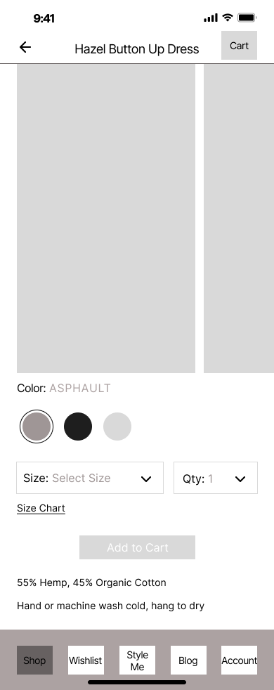 Coming from a sustainable fashion background, I found it fascinating and engaging to talk with users about their overall shopping habits. I learned a tremendous amount interviewing Kate VanAsten, and worked very hard to balance Wulfka’s mission and values with users’ stated shopping wants and needs. One of the biggest surprises was in response to whether or not a smaller inventory was a problem- 100% of those interviewed said that a smaller inventory was a positive, that it “shows that they’re not just trying to produce for production sake” and that the user is “more likely to buy something knowing fewer items are being produced.”